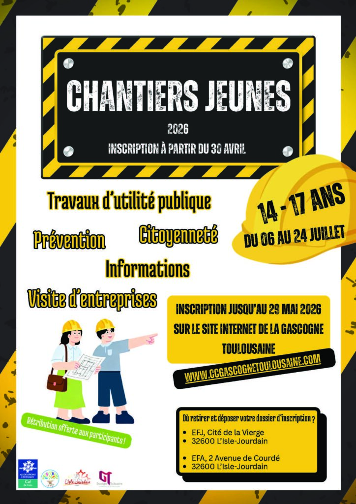 Les Chantiers Jeunes Intercommunaux sont de retour du 6 au 24 juillet 2026.