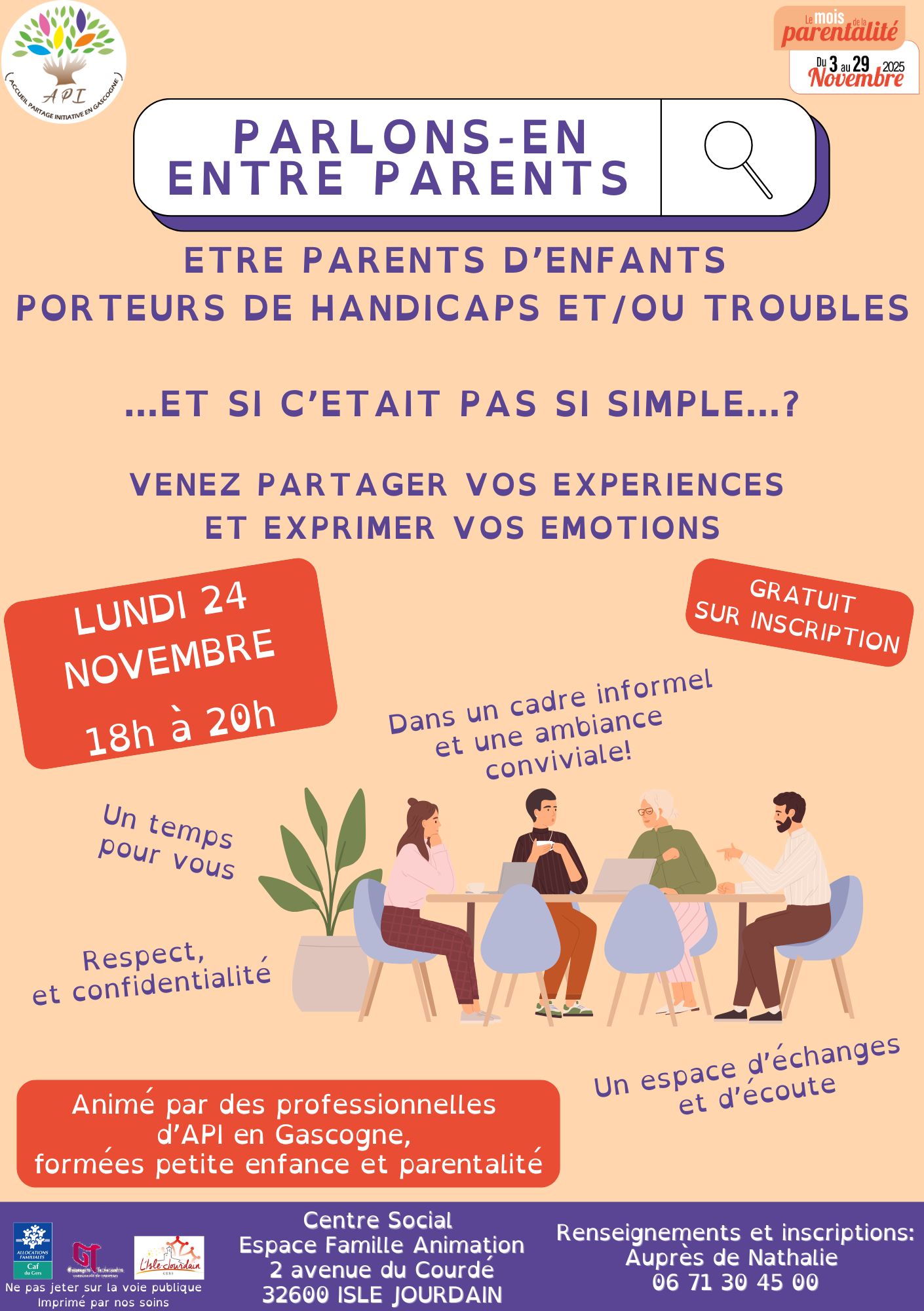 Venez partager vos expériences, exprimer vos émotions et échanger dans un cadre bienveillant, respectueux et convivial.